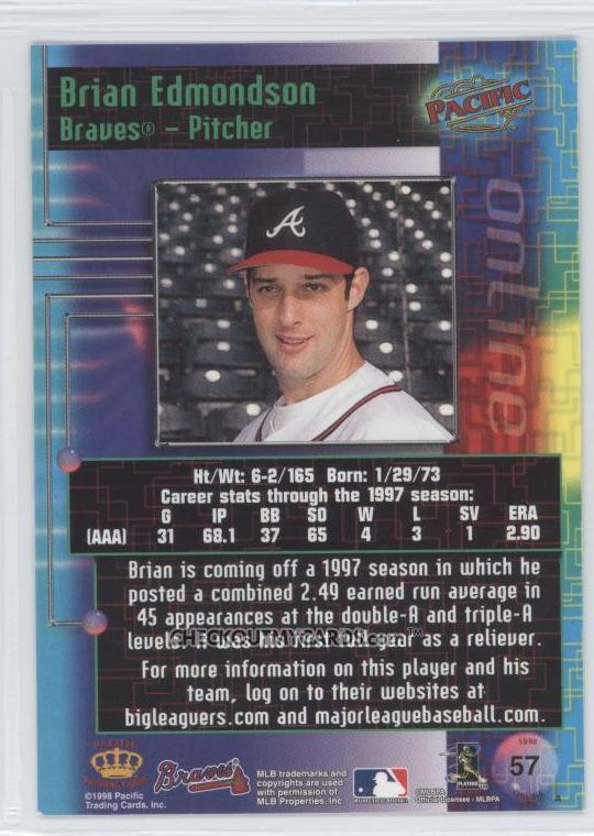 Edmondson only spent part of his rookie season with the Braves in 1998. Image for the Pitchers Pack.