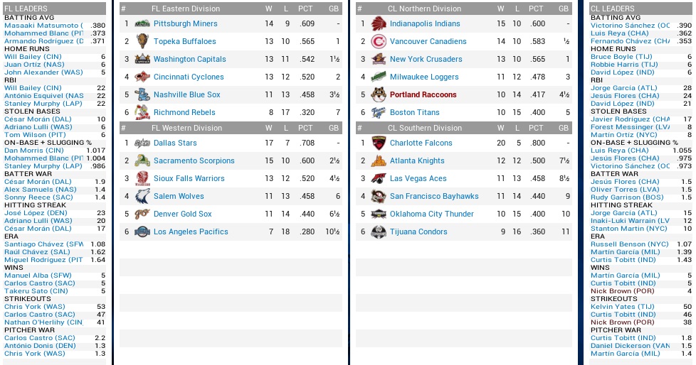 On to the defending champions, and how awkward is that to say about the Falcons. They were in first place in the South yet again, smothering the opposition with almost seven runs scored per game, and 129 runs in total. Almost their entire starting lineup was hitting .300 or better, with Fernando Chavez coming in at .403 even. That their rotation ranked ninth was not quite as important …