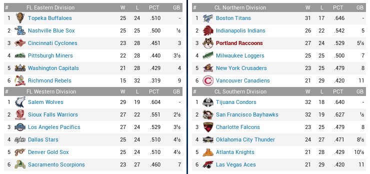 Raccoons (25-20) @ Aces (18-26) – May 24-26, 2033