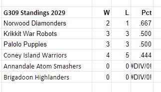 I reviewed my schedules this morning and it appears to me Brigadoon will only play 7 OL games (all vs Annandale) so they won't be eligible for the crown (not that I was worried about that!). Both of my teams are getting a reality check in gold this week.