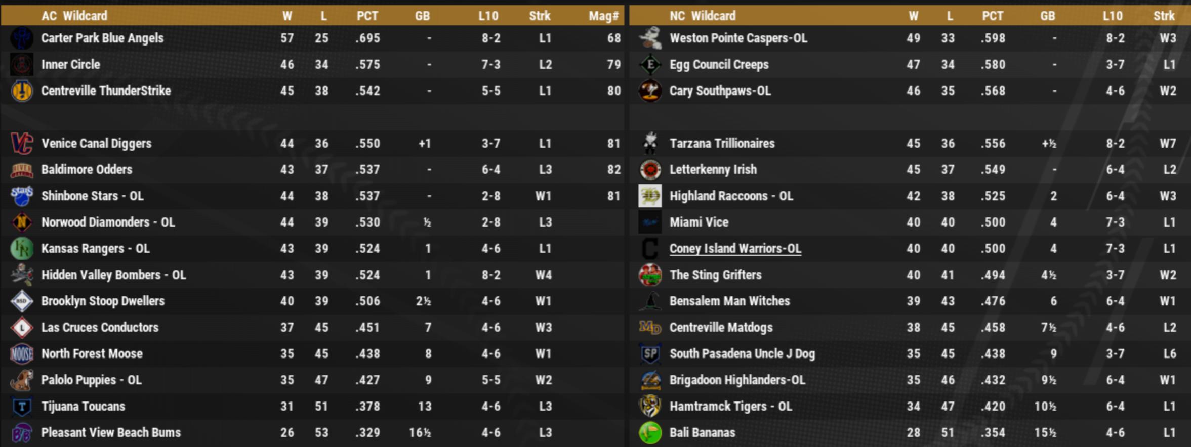 Kansas still sits on top of the leader board as we hit the mid mark of the season. OL and PT standings below. Don't have much time for a writeup today.