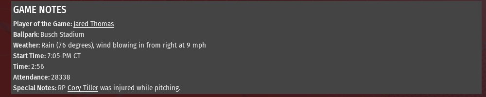 Thomas added an RBI single in the fifth, again off Wortham, as St. Louis took its biggest lead at 5-1.