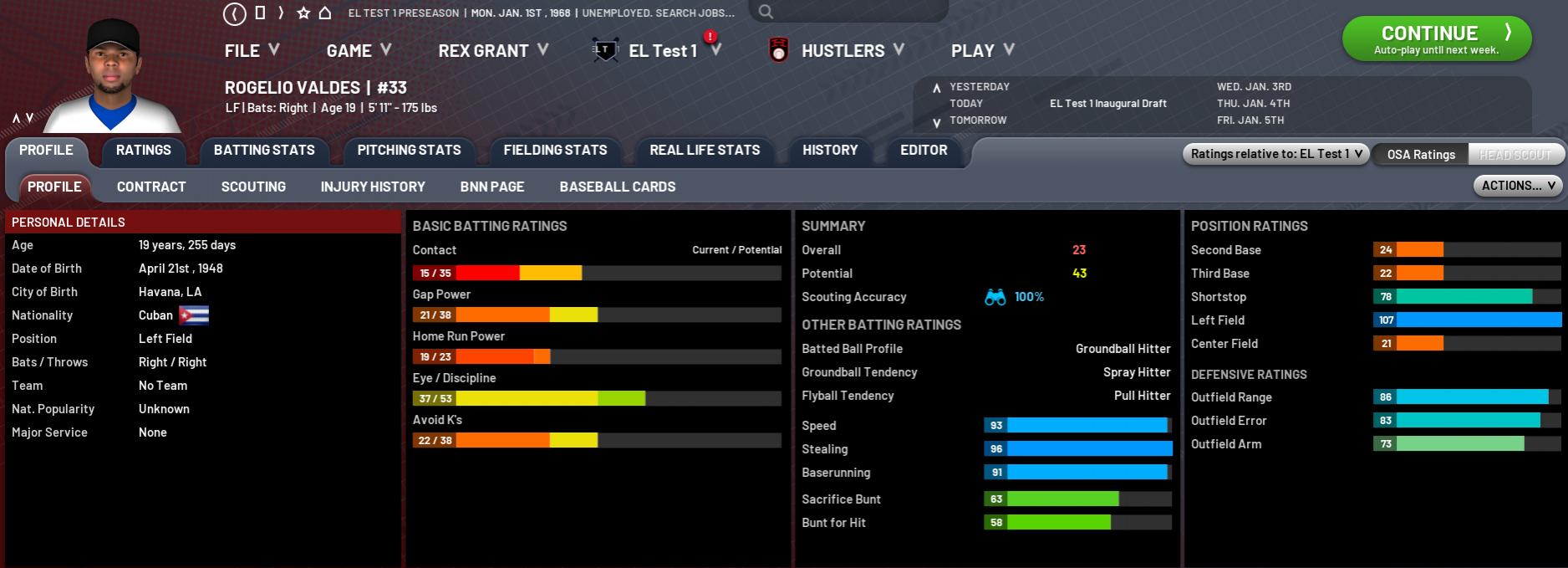 Started young, 70-105% profile. For some reason, OOTP imports him as a SP.