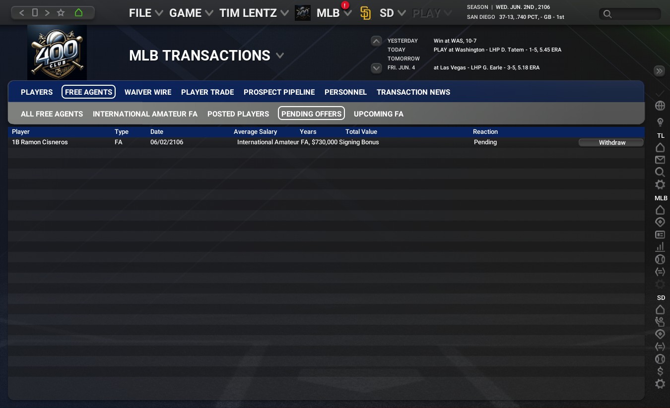 Second screenshot - shows the offer screen after this morning's sim. Offer didn't take, it's showing my most recent offer was from May.