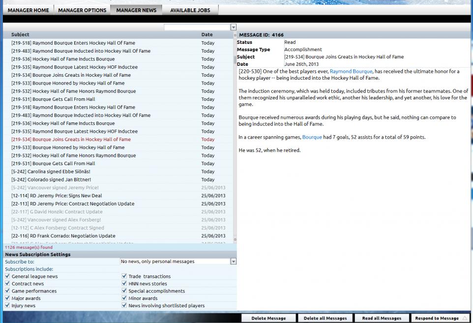 Had this happen where I had about 20 messages about Ray Borque being accepted into tha HHOF with the new build.