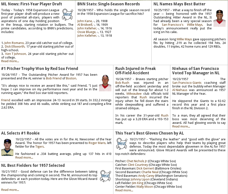Baseball owners fearing that not having a commissioner would escalate animosity towards the owners and the game which seemed to be in disarray and cause a total abolishment of the Baseball economic system that had been so profitable for it’s owners for so long. The baseball owners frantically searched and nominated possible replacements for Frick but after several candidates failed to get the required votes. Then one guy made the cut….Fels Napier! While Napier knew very little about Baseball he knew about business and he wanted to capitalize on the excitement on the West Coast that had developed very quickly with the relocation of two of Baseballs most storied franchises… the Giants and Dodgers. Napier came up with a very ambitious plan to expand baseball 4 years before the scheduled date in 1962, He didn’t want to wait 4 years or 2 years he wanted expansion NOW! The owners were helpless, Firing Napier would surely raise red flag to congress and America that Baseball is a dying game and they could ill afford for this to happen. It was Do or Die for Baseball. Failure would mean the collapse of baseball as we knew it, the end of the Monopoly and cost the owners Millions of dollars! They had no choice to go along with this ruthless plan and pretend like they liked it! Comming soon, The announcment of the Expansion teams for Major League Baseball 1958! To Be Continued.....