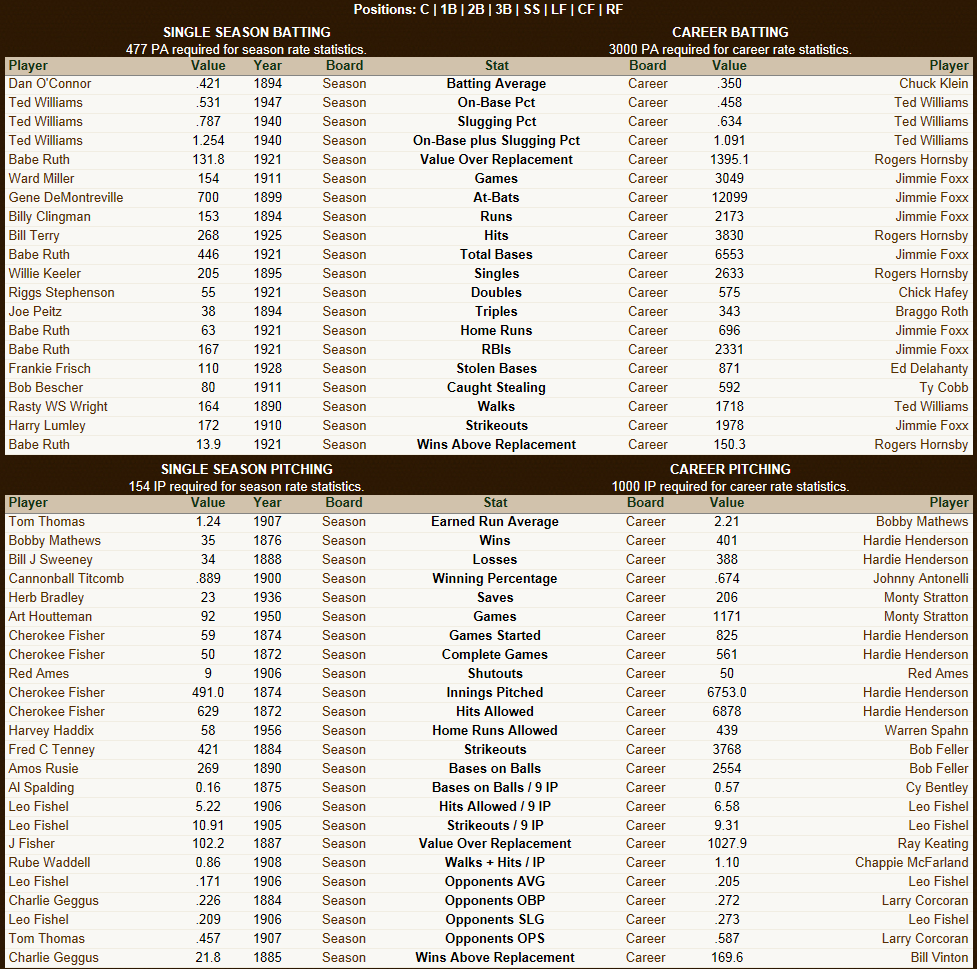 Single Season and Career Records