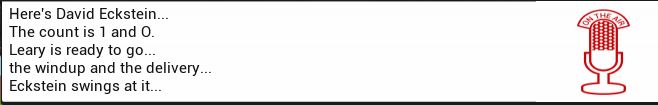 I'm seeing some weirdness with the PbP...on a couple of fly balls to left field (including one in foul territory), it listed the right fielder as the player making the catch, and on the pitch-by-pitch mode, I've noticed a couple of times when there's a foul ball, it won't include the name of the fielder who goes out to try to catch it.