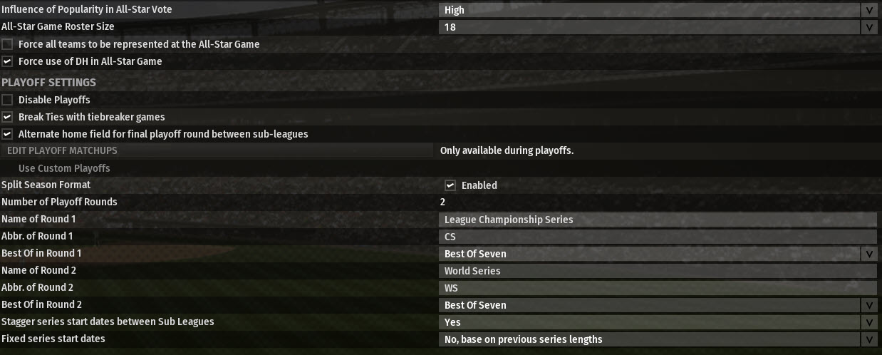 Screenshot is playoff settings as found.