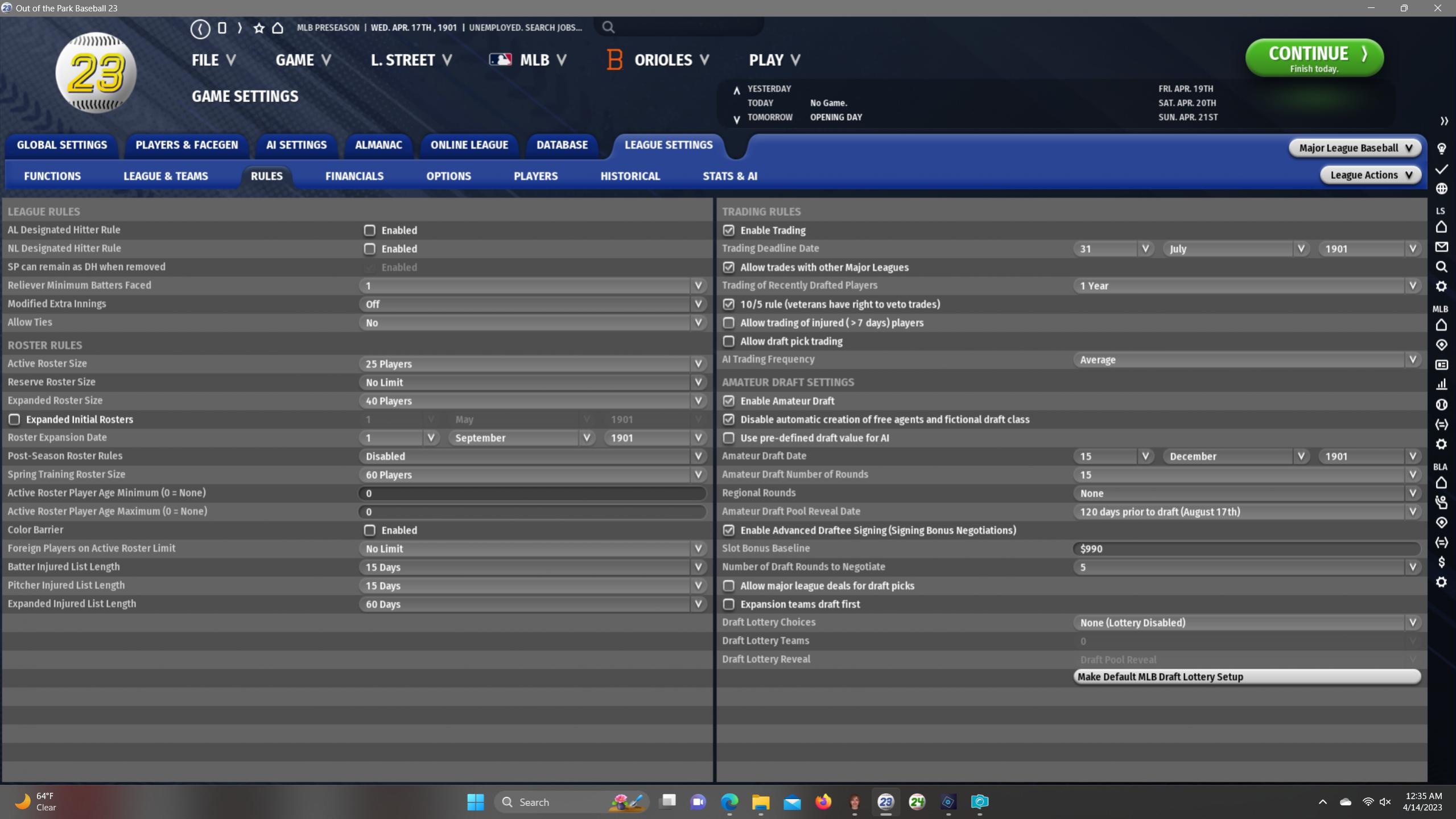 So weird...my game is just not lining up with those screenshots. Again I am using OOTP 23, could that be why? Could it be "automatically import historical rookies" I am just not seeing something that says "import and maintain real minor leagues" on that screen.