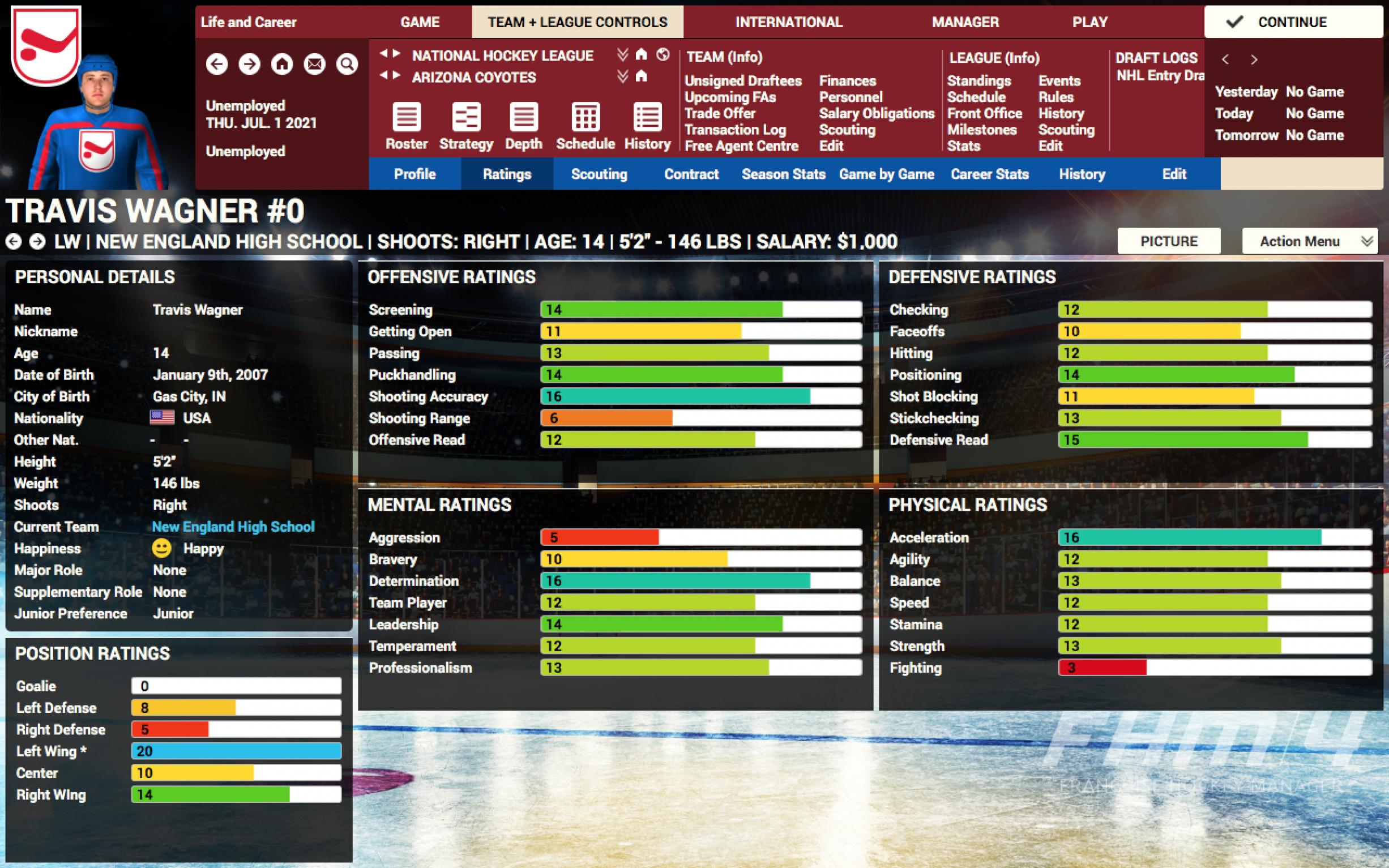Travis played two years at Tabor wining back to back National Prep School Championships. For the first time in his career he was unable to upstage his brother in points. In his two years he only put up 48pts each year. On the personal level he was able to land himself a girlfriend but landed himself in deep **** by accidentally getting her pregnant. Unable to bear the responsibility of fatherhood, he forged his parents signatures and signed with the Powassan Voodoos cutting all ties with his family and girlfriend. After two years with the Jr. Buccaneers, George was not able to post the same numbers as he did with the South Shore Kings. It wasn't his fault, the level of play wasn't the same in Iowa as it was in Massachusetts. But George didn't blame his teammates, he blamed his oldest brother Vincent for making him constantly move. Not willing to move again to New York, he and his parents finally came to an agreement where his parents are willing to send him to Sweden to train with the same team his idol, Henrik Lundqvist, trained with at the same, Rögel BK, and will be playing for their U14 this season. And yes he and Vincent haven't spoken to each other since moving to Des Moines. |