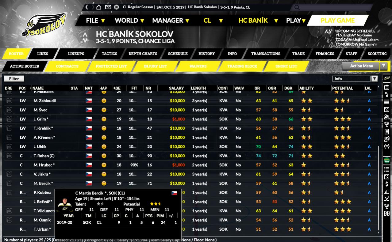 After this crash, this prospect player ended up back in the lower league, after I had brought him up and had placed him centering the third line for the two games that disappeared as well as playing a point position on the power play.... I just tried bringing him back up, dress hime, and reset the lines, but no player roles.. and using the assistant causes the crash.