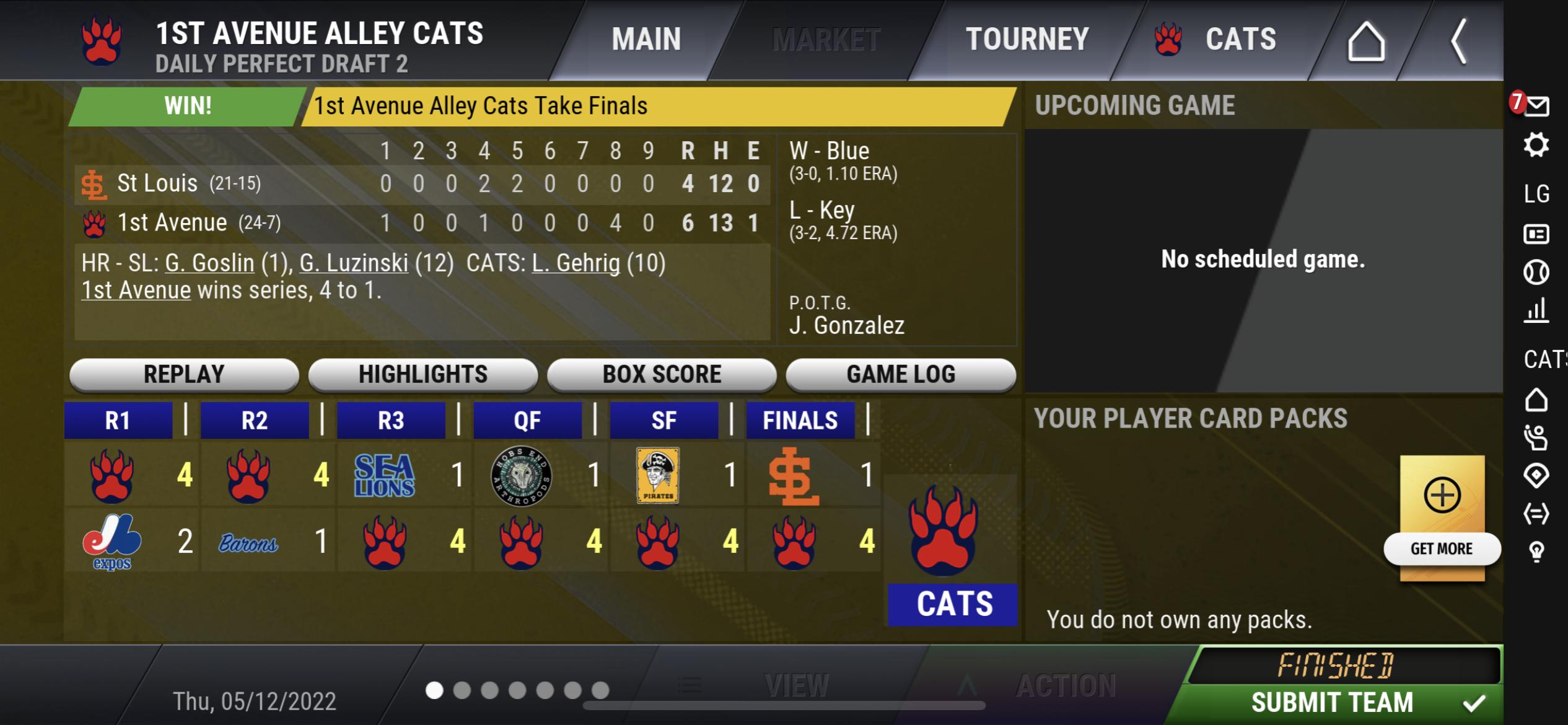 In OOTP Go! I would run into a win every now and then, especially on capped tournaments and perfect drafts, but in 23 I haven’t been able to place in the top 4, maybe even the top 8, in ANY tournament. And I’ve probably participated in over 200 since the game launched. I feel like a randomizer could do a better job than me, which makes me wonder if things have changed with the settings? What should I do to place more often? I’m doing the same stuff I used to!