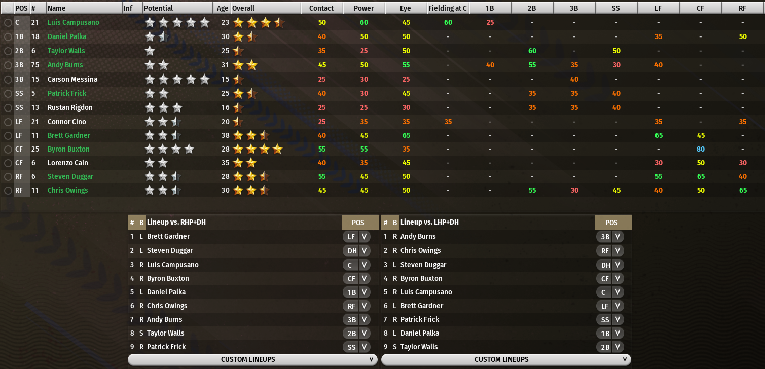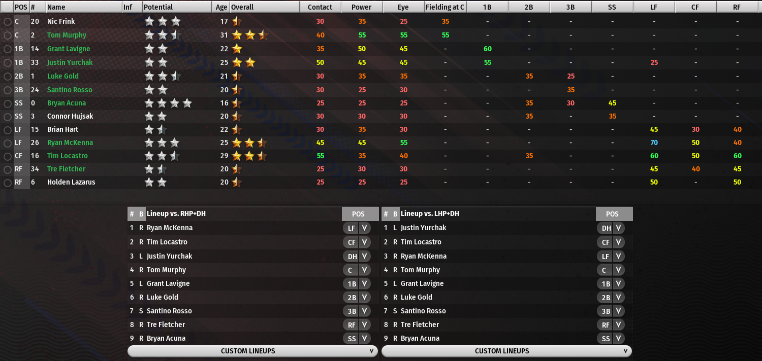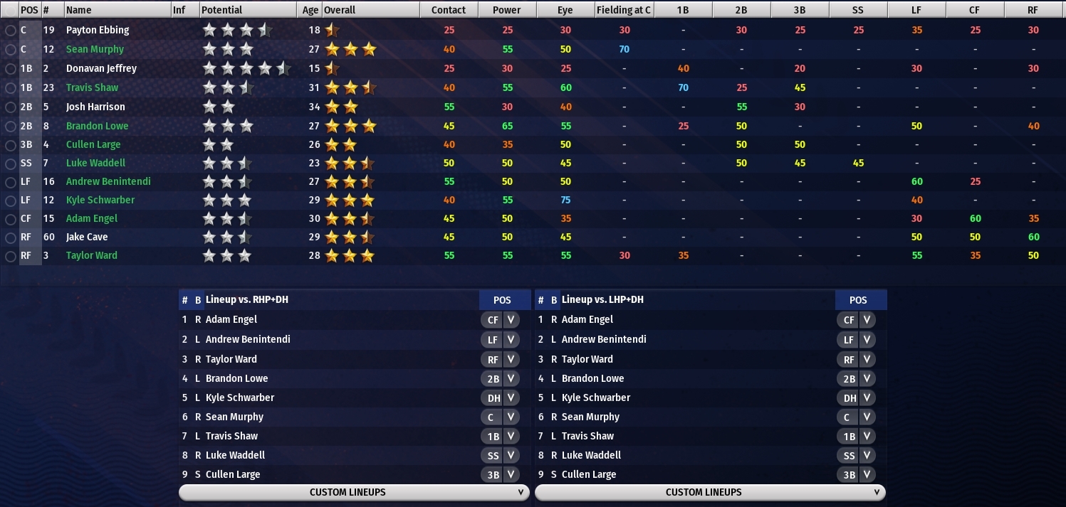 I've been lurking in the shadows in this forum for quite a while. I mostly enjoy wacky simulations with real players, which I spend most of my time on while playing OOTP. There's one simulation idea that had always been in my head but I've never had the guts to start off with. That's got to change. This is the time to document that labor of love I've been wanting to give a shot: What would a big tournament between all different states look like? We don't have anything like this in real life. College baseball probably comes closest with hometown heroes playing with the name of the state on their chest. But there's no limit on recruitment of players from another state. No, what I want to know is what a tournament of every single state would look like. 50 states, 1 winner. What state would win? This was the premise of my idea, but it immediately had two issues: the size of certain states as compared to others doesn't really make this tournament that exiting from the onset. I think it's pretty safe to say either California, Texas or Florida would win this tournament. Also, some smaller states do not have enough players in the game's database to form a 26 man roster. That's why I came up with the idea to - instead of using 50 states - divide the US into 50 regions of equal population size. This way every region has the same amount of players to choose from which made it possible to actually create 50 different rosters. It also ensures some excitement because now we'd have different teams from California, Texas and Florida. Luckily I didn't have to start from scratch with this idea, because a quick google search later I found out that a redditor had already came up with a very useful map. I'd love to credit him/her but unfortunately I can't find the post anymore. Anyway, here it is: ![]() ![]() Let me start off saying I'm not from the United States. You might have noticed English is not my first language as I'm from the Netherlands. I have no rooting interest in any region whatsoever. I also do realize that some regions are very weirdly chopped. The Midwest looks like it has all the new borders just a few 100 miles too much to the right. And Orange County suddenly belongs to San Diego. The region names are probably terrible too. And I bet there's more in here that might not really appease everyone. But yeah, we have to draw a line somewhere. Get it? Draw a line? I'm sorry. Anyway, this way every region more or less has 6.5 million inhabitants. The Rosters So how did I come up with all rosters? Basically I've exported a list of every American born player in OOTP filtered by place of birth (according to OOTP). I then distributed them according to this map. To make the best rosters without spending too much time I've used players CAs and PAs to quickly rate them (with CA counting for 60% and PA for 40%). This helped me pick every region's best 2 catchers, 6 infielders, 5 outfielders and 13 pitchers for a total 26 man roster. If there were any ties, I used various tiebreakers like major league or professional experience, age, stamina. Some regions were quite thin on professoinal experience so there are quite a few High School/JuCo/NCAA with 4* or 5* PA in there as well. In my next posts I'll publish all 26 man rosters of the 50 different regions. The Tournament Structure I love simulating and watching games myself so having a 162 game schedule was never going to happen. I've derived inspiration from the College World Series. However, because I feel like one bad day often leads to the favorites crashing out way too early, I've come up with some alterations. Basically this tournament will consist of five phases: Regionals - Every team is distributed over one of 8 regions. You can see these in the image I uploaded above. Every region contains 6 or 7 teams. Every team will compete in their regional first. These tournaments will be a triple elimination knockout. I liked the knockout idea, but single elimination was out of the question. Even double elimination felt too cutthroat for me, so I've gone with triple elimination. This will guarantee every team to at least use every starter once. You will learn more on what the schedules look like when this phase starts. - The best 4 teams of every regional will advance to the Super Regionals. That's right, only the 5th, 6th and 7th team of every Regional will be eliminated. - Games will be played at the ballpark of the home side. - The final position in your Regional will be very useful as this determines your seeding for the Super Regionals. Super Regionals - After the Regional phase, all 32 remaining teams will be divided over one of 8 Super Regionals. A draw will determine which team will play where. - Every Super Regional contains one #1 from the Regional phase, one #2, one #3 and one #4. - No two teams from the same Regional will be drawn together in the same Super Regional - All games will be played at the stadium of the #1 seed (more or less like in college baseball). - The format will again be triple elimination, but a 4 team triple elimination this time. - This time only the 8 Super Regional winners will advance to the next phase. Elite Eight Series - The 8 Super Regional winners will be drawn into four different Elite Eight Series. - These will function more or less like the LDS in MLB, with all series being Best-of-5. - Ties will be determined based on seeding. All teams win record in the two prior phases will be used to make a list from #1 to #8. In case of a tie, net run rate will be used. More on that later when the phase arrives, but it's a concept from cricket. You can learn about it here. - The 4 winners will advance to the Final Four Series Final Four Series - The 4 winners advance and will be paired based on seeding again. - The Final Four Series are best-of-7. - The 2 series winners will advance to the Series of the States Series of the States - The 2 winners of the Semi Final Series will play the Series of the States in another best-of-7 