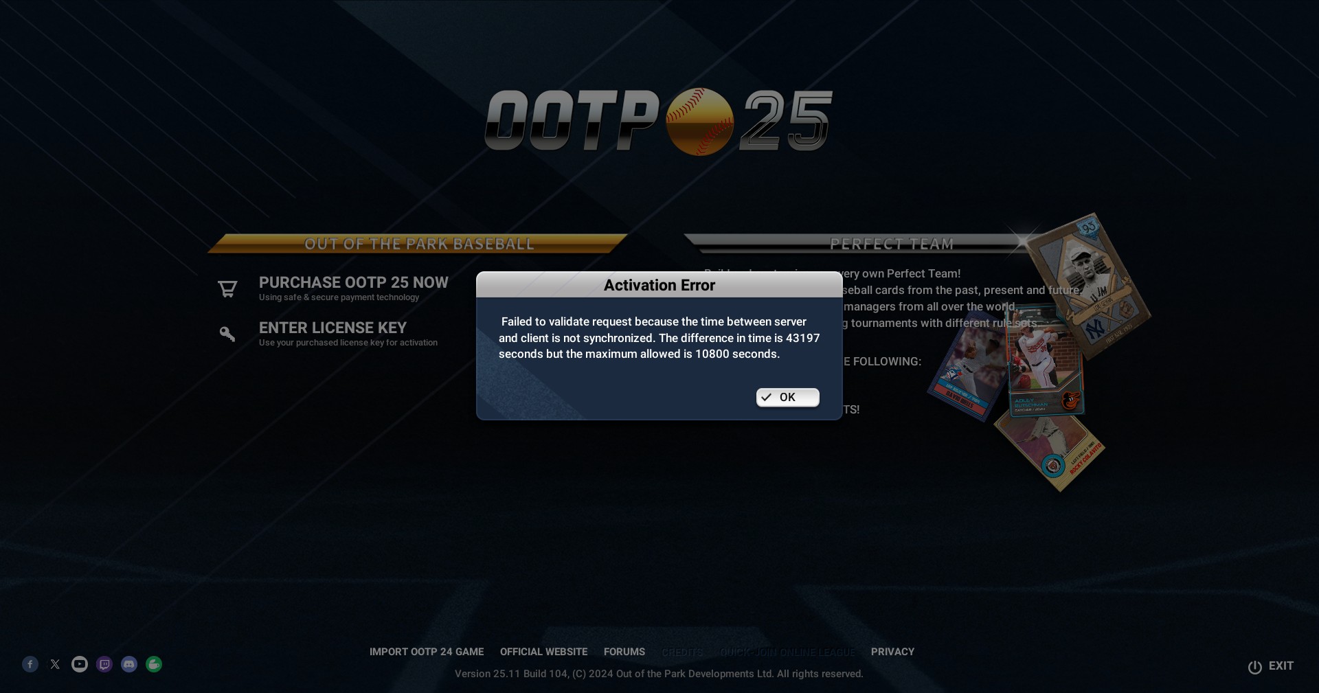 I had to reset my computer and BIOS yesterday....long time pc issues finally resolved. But when I came to play OOTP, it gave me this even though it's the correct log in. Of course if I can still transfer my league over into 26 without logging in, then I won't worry about it. But what do I do about this?