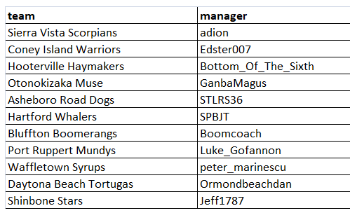 Syrups are in.... probably going to wait until Monday to create the team though. Using last season as a gauge, it took an entire week to acquire 25 pre-ww2 players to fill the squad, so want to give them that full entry week to get what they need. (edit: the one nice thing about working from home during this time of plague is I can get my teams setup and check in early-and-often during the day)