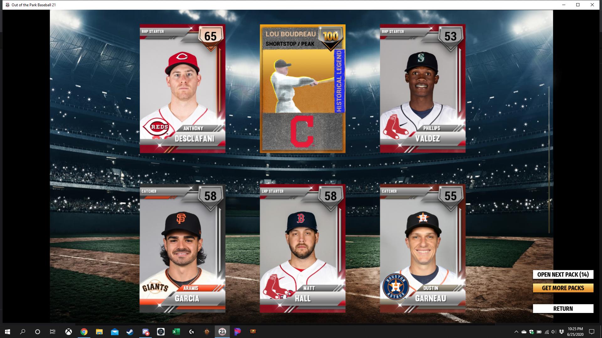 Cristobal will play in RF for now, Willie Wells is at SS, and Dihigo is backup OF and general utility guy. SE Jackie is at 2b. Also, I pulled this 100 Lou Boudreau on my main team, Topeka Defenders. They are a $100 team to get started, but have been F2P since. Anyways, I was the first sale, and took an offer of 850,000 PP for him to be sold, so rather than going for a 12 hour bid and risking more pulls of him, I took the guaranteed payday. Safe to say, it's be a good week for my teams.