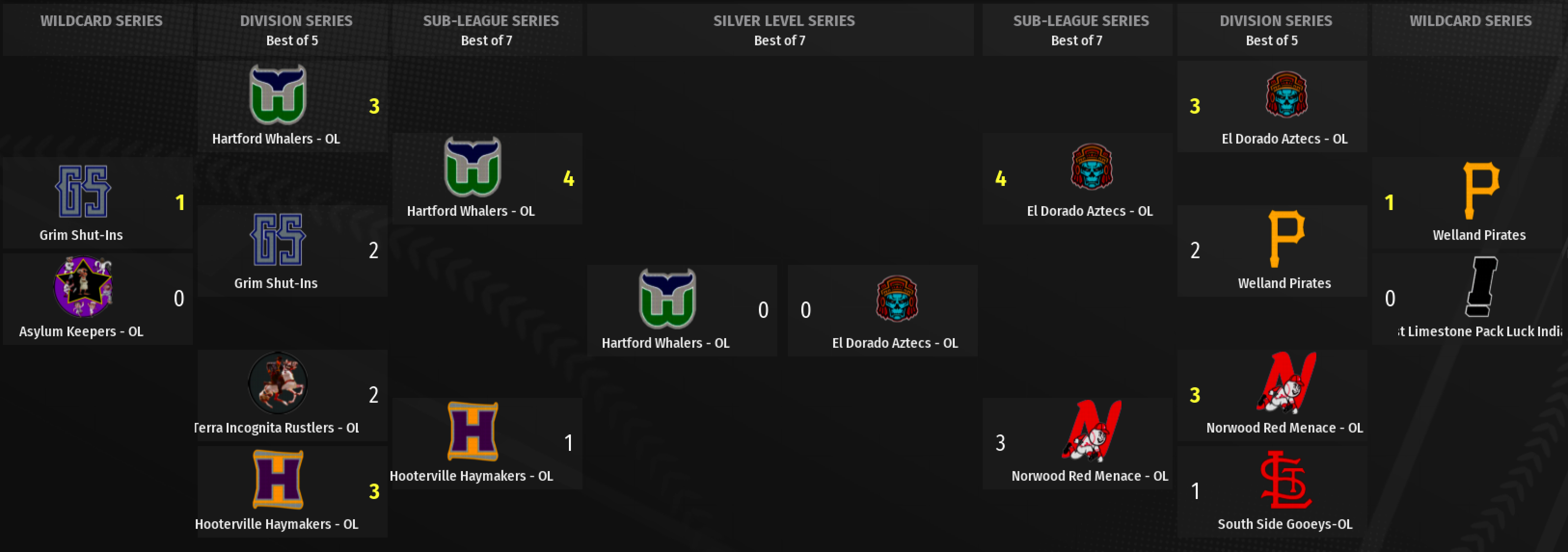 Team movements are set. In the PT playoffs, there is an OL World Series between Hartford and El Dorado in silver. Highland is in the world series in diamond. Please check your friends list and submit. There should be crowns at stake in bronze and iron if the teams are diligent.
