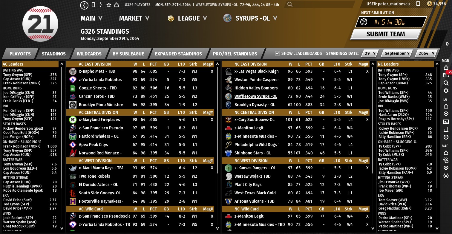 Cary Southpaws (1040 wins) and Waffletown Syrups (1002 wins) become the 3rd and 4th OL teams to break the 1000 win mark for v21