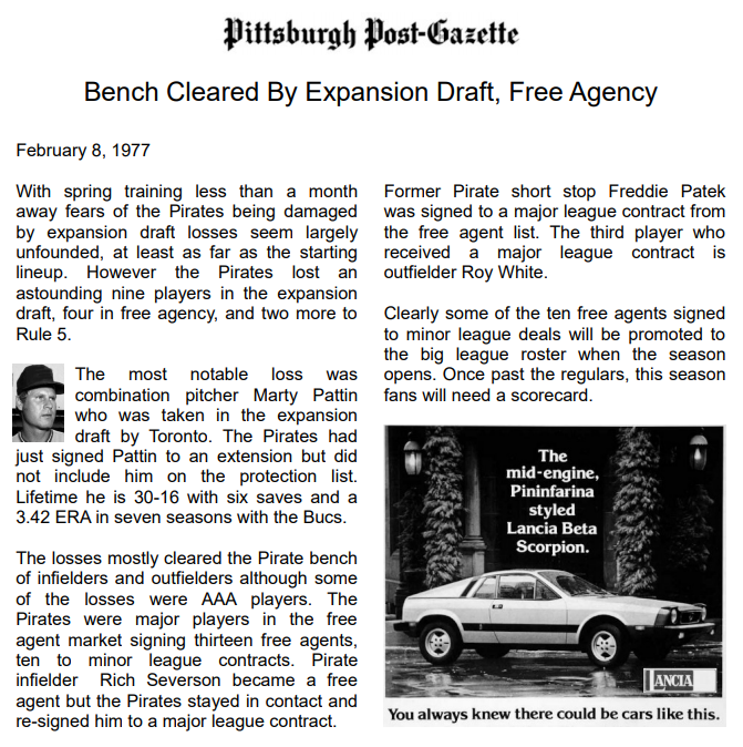 The Pirates farm produced a lot of talent 69 into the 70s. The Golden Years of the team. In the 70s, 6 1st place finishes, 3 seconds, 1 third. Need that young and cheap talent for moneyball!