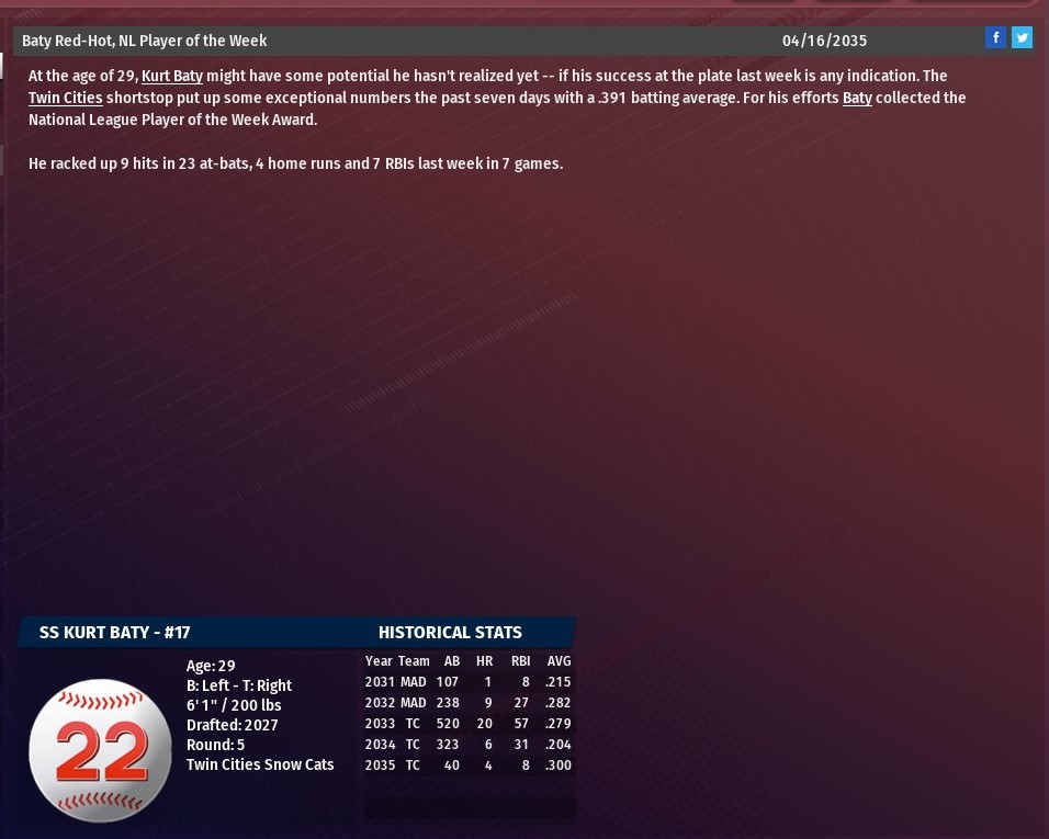 Jose Ramirez hit a two-run homer in the top of the first inning, and St. Louis never trailed in defeating Milwaukee 5-4 at Miller Park (2020). The win gave the River Walkers in two of the three games in the series. Bob Saavedra led off the game with a single off Crusher starting pitcher Scott Muller. Two batters later, Ramirez hit his fourth home run of the season to put St. Louis up 2-0. A solo homer from the Crushers' Nicolas Thibault off St. Louis starting pitcher Edward Kunselman cut the lead in half in the top of the second. Nick Shaw hit his sixth homer of the season, a solo jack off Mueller, in the top of the third to make it 3-1. Milwaukee came right back to make it 3-2 in the third. Caiden Matheny led off the inning with a double off Kunselman. Levi Usher brought Matheny home with a one-out double. The Walkers gave themselves some breathing room with two runs in the top of the seventh. Saavedra led off the inning with a double off reliever Tony Lujano. Jose Ramirez later drew a one-out walk. An errant pickoff throw by Lujano moved the base runners to second and third. Nick Shaw plated them both with a single. Thibault homered for the second time in the bottom of the eighth, it came off Nick Ruffalo, to pull the Crushers to within 5-4. But Nick Strother pitched around a lead-off walk in the ninth for his fourth save. Kunselman (2-2) earned the win after allowing two runs on four hits over 5.2 innings. He struck out seven and walked one. Zachary Stella got the final out of the sixth. Scott Rissler (0.2 IP) and Greg Sones (0.1) combined on a quiet seventh. Ruffalo's eighth was not quiet, as he gave up two runs to allow the Crushers to draw within 5-4. Strother shook off a series of bad outings in the ninth for his fourth save. |