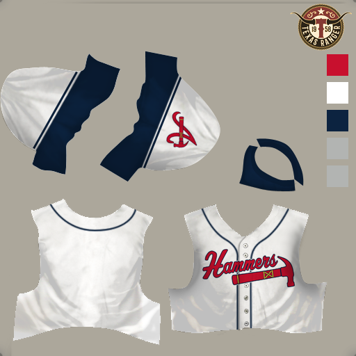 Well, I'm in the 2024 season, and now that I know how to do this, thanks to all the fine tutorials here and the base files provided by others, I've mocked up everything I need for Atlanta's team to now be the Hammers. The attached files includes everything you need: ballcaps, unis, logos and (in the following post) ballpark files. Very little of this work was my own, save for the assemblage and plugging it into place on top of the work of others before me, so thank you to all of those who came before. |
