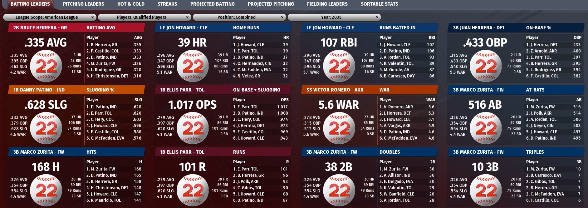 Walkers news: Sept. 1 -- Team statistics for 2035 season