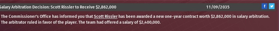Walkers news: Nov. 10 -- Arbitration results: Rissler and Wigfall