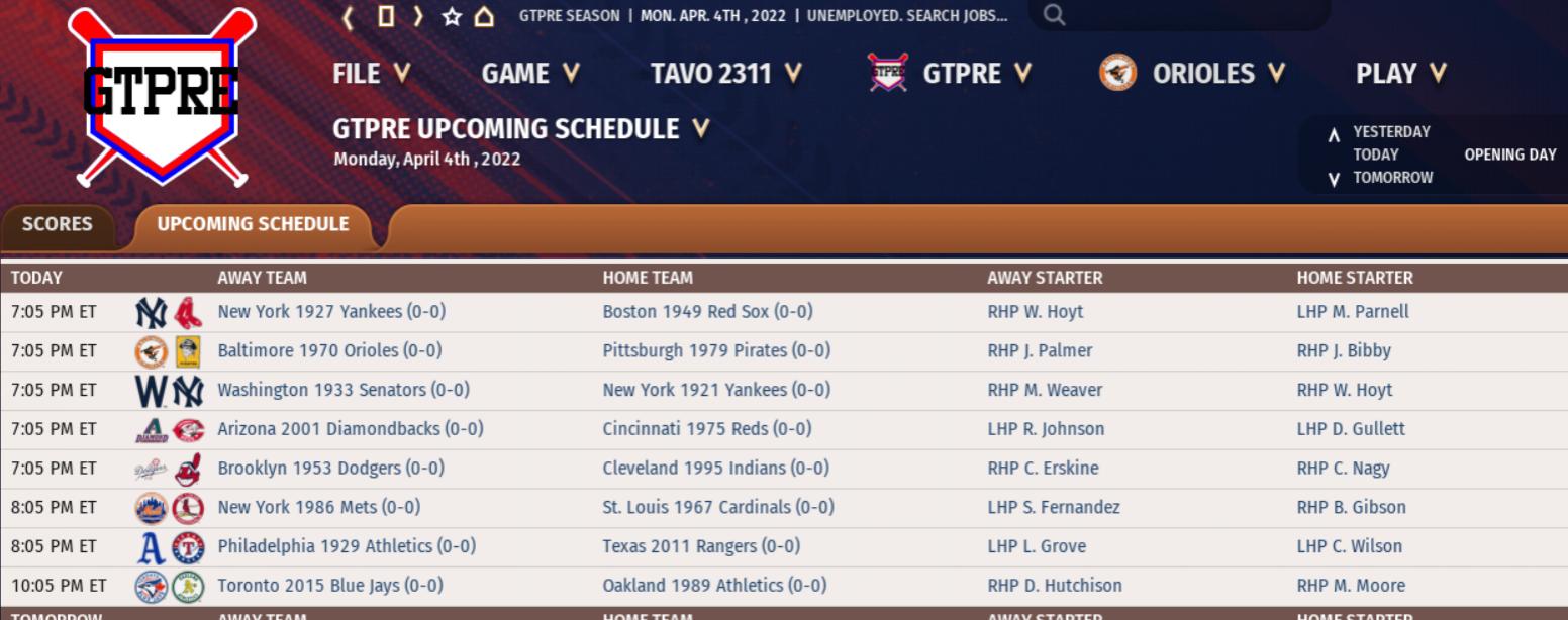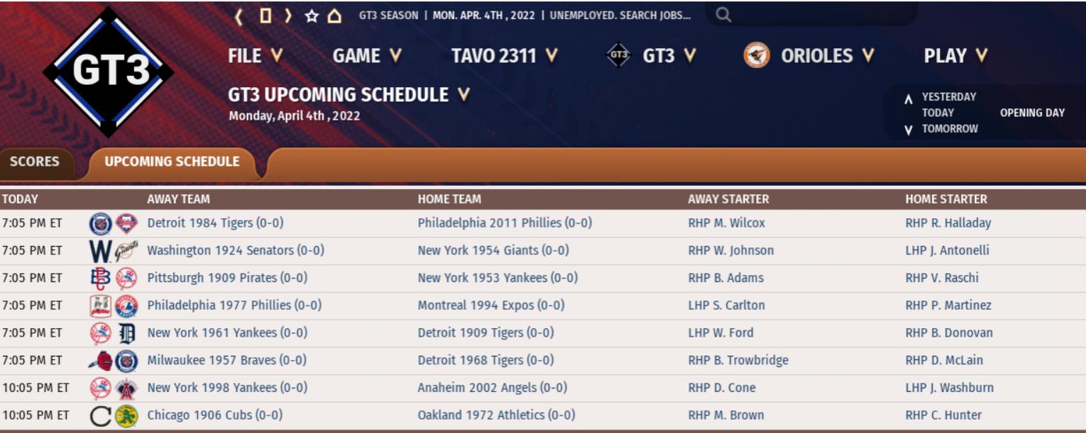 Opening Day schedules are below. In the GTPL we have a Yankees vs. Red Sox rivalry series at Fenway Park right off the bat! And in St. Louis we get Sid Fernandez vs. Bob Gibson in the game of the day. In GT2 the 1902 Pirates and their staff that is expected to stifle opponents get their first test by going to Colorado's Coors Field. An interesting early litmus test for this polarizing team. David Price and Greg Maddux is an enticing pitching match-up in Atlanta. GT3's game of the day features lefty Steve Carlton leading the '77 Phillies into Montreal to face 1994 Pedro Martinez. Finally in GT4 where the pressure will really be in from the get-go I'm very interested in the all-Red Sox series at old Fenway, starting with Chris Sale vs. Smokey Joe Wood. Should be just the first of many exciting days. Looking forward to the action! |