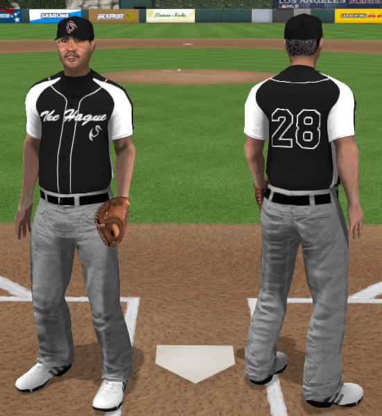 The OOTP Uniform Maker doesn't have an "underarm patch" option, so I had to cobble that together best I could for the road uniform. Wassenaar doesn't have a current white uniform, so I took inspiration from their 1970s look. |