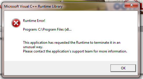 "Runtime Error!" This application has requested the Runtime to terminate.." Any idea what this means