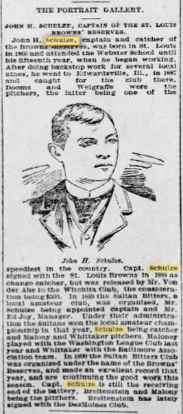 Missing Player John H. Schulze 1891 St. Louis Brown Stockings