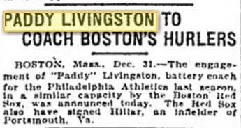 listed on fedxit as Paddy Livingston 1920. I can't find any indication of him having been with Red Sox. Any help identifying this player is appreciated.