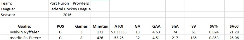 12/18/2016 C Brant Sherwood, Out, Sprained Ulnar Collateral Ligament, 1-2 Months 12/16/2016 C Branden Parkhouse, Day-to-Day, Mild Shoulder Strain, 1-2 Weeks 12/15/2016 C Ahmed Mahfouz, Day-to-Day, Foot Contusion, 1-2 Weeks 12/13/2016 RD Jack Callahan, Day-to-Day, Strained Foot (Available) 12/4/2016 C Brant Sherwood, Day-to-Day, Bruised Hip (Available) December 2016 Transaction Log 12/22/2016 C Brant Sherwood Placed on Injury List 12/7/2016 RD Jack Callahan Activated from Injury List The Port Huron Prowlers have done a lot to turn this season around, under the leadership of GM/Head Coach Brian Corwin. Corwin has stuck to his guns keeping his line and goalies the same, but has tweaked the amount of playing time and opportunities his starters will receive as well as making use of some of the younger players late in the games giving other players a chance to rest and stay healthy over a long season stretch. The team last checked in at 4-6, and in a downward slump in terms of momentum but have recently in the month of December gone on a hot streak to 11-10-1 Prospect Watch Chris Brennan: G: 3 A: 8 P: 11 PIM: 15 +/-: 3 Jordan Thomson: G: 1 A: 5 P: 6 PIM: 4 +/-: 5 Shawn Ouellet-St-Amand: G: 7 A: 11 P: 18 PIM: 21 +/-: 8 Austin Adamson: G: 7 A: 14 P: 21 PIM: 18 +/-: 5 Daniel Del Paggio: G: 12 A: 8 P: 20 PIM: 30 +/-: 7 Scott Allan: G: 3 A: 7 P: 10 PIM: 36 +/-: 9 Last edited by cooperthegiantscat; 08-12-2017 at 03:22 PM. |