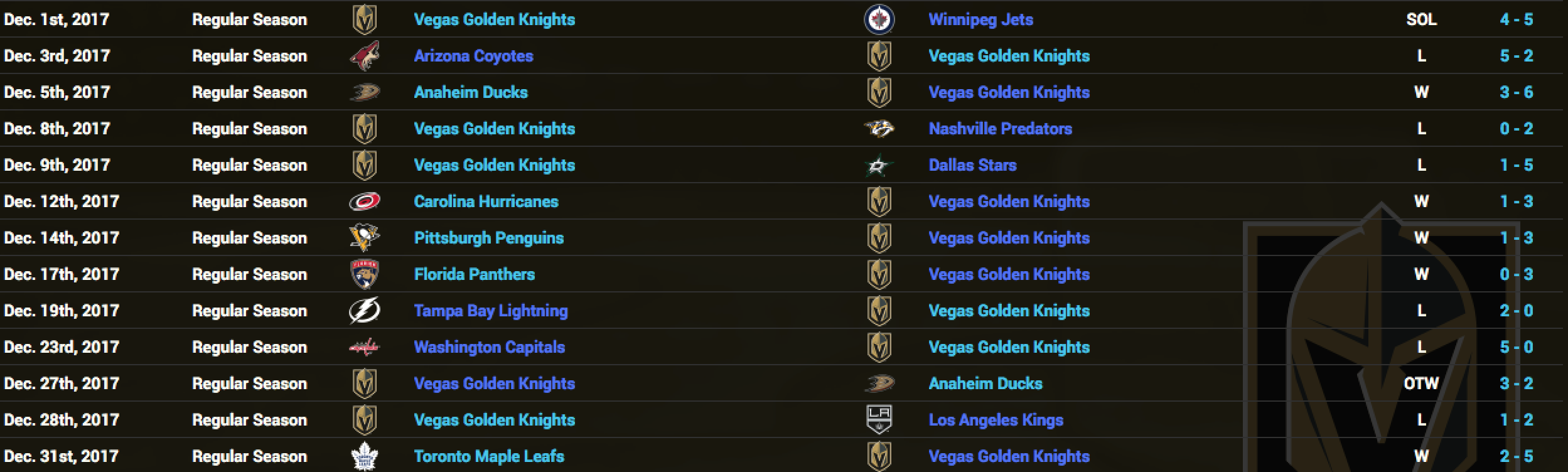 February was great for the Knights, going on a 9 game winning streak, finishing the month at 11-3-0.