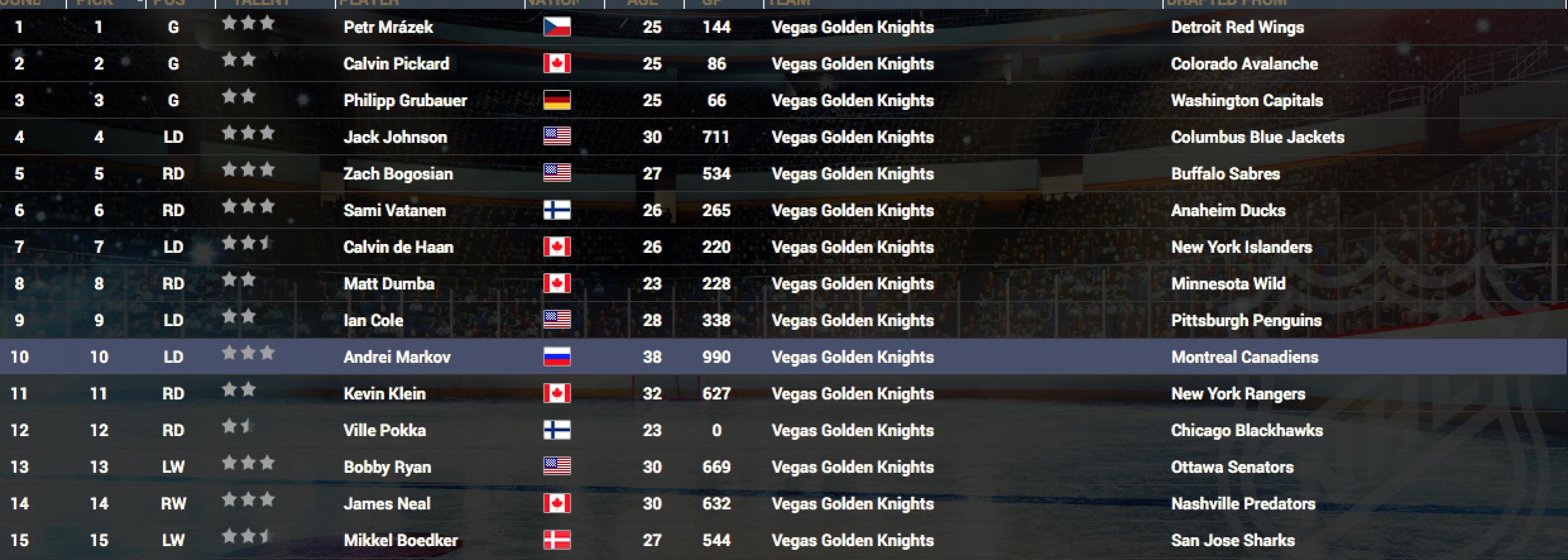 I'm a win now kinda player :-) a win now at any costs... when playing FHM 3 with the Oilers to see how well McDavid can do I traded away every pick the first 4 years to build a team around him which got me 9 Stanley cups in a row, a GM job with Canada and so on... Want to see if I can replicate that with Vegas! With Strome struggling a little I'm considering trading him for Matthews and pair him with Laine to see what the 2 of them can achieve together... Trust me it gets challenging when you enter your 5th or 6th year and all the kids are grown up and want big contracts!!! I will try to keep the core together for as long as possible!!! The Core is: Murray in goal, Werenski and Ristollainen on D, Laine, Barkov, Marner, Tkachuk and possibly Strome... |