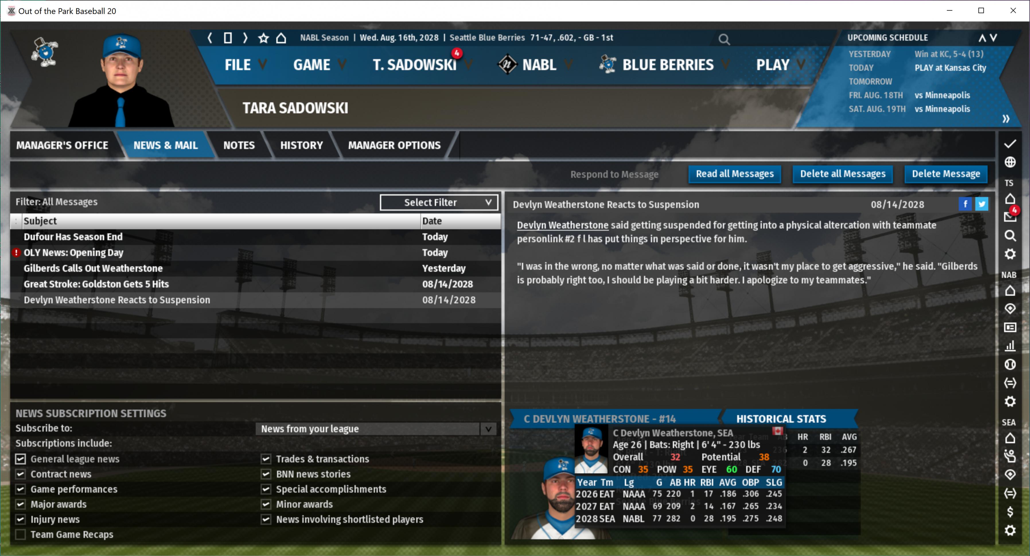 Just trying to be helpful. ![]() http://manuals.ootpdevelopments.com/...augural_drafts poos should be pools (Inaugural Draft Overview) http://manuals.ootpdevelopments.com/..._player_drafts poos should be pools (First Year Draft Overview) http://manuals.ootpdevelopments.com/..._draft_process In the table of contents on the left and in the 'next page' sequence, I think the order is wrong. I expected them to come in the order that they occur. Suggested Order: Draft Pool Announced Draft Rules Pre-Draft Activities Continue Draft Post Draft Activities http://manuals.ootpdevelopments.com/...e=rule_5_draft poos should be pools (Rule 5 Draft Overview) Rulesscreento should be Rules screen to (Running the Rule 5 Draft) http://manuals.ootpdevelopments.com/...and_management In the table of contents on the left and in the 'next page' sequence, shouldn't Roster Types come before Waivers like it is listed on this page? http://www.manuals.ootpdevelopments...._stats_batting Homescreen should be Home screen (Spring Training Pages) http://www.manuals.ootpdevelopments....ge=opening_day In the table of contents on the left and in the 'next page' sequence, I expected Opening Day to come after Spring Training rather than after Winter Meetings. http://www.manuals.ootpdevelopments....port_functions Improper Link [selflink page=538 text=back up your data]
