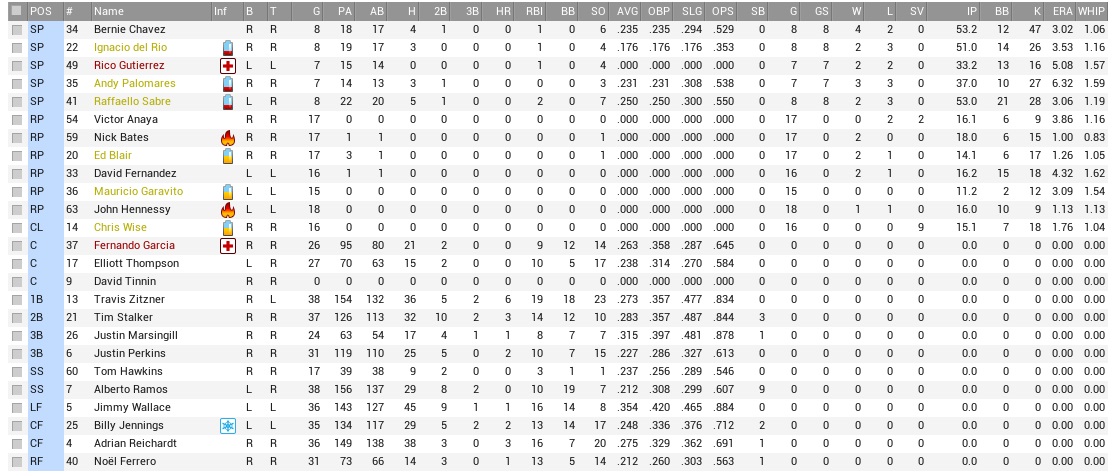 We will field three All Stars this year. No young starter among them, but two relievers in Chris Wise and – ****ing hell! – Nick Bates! … Travis Zitzner is the only position player we put on the roster.