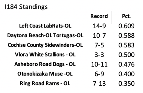 Vlora has the early percentage point lead in Iron 184, however, the Left Coast LabRats seems to have a winning formula in OL play so far.