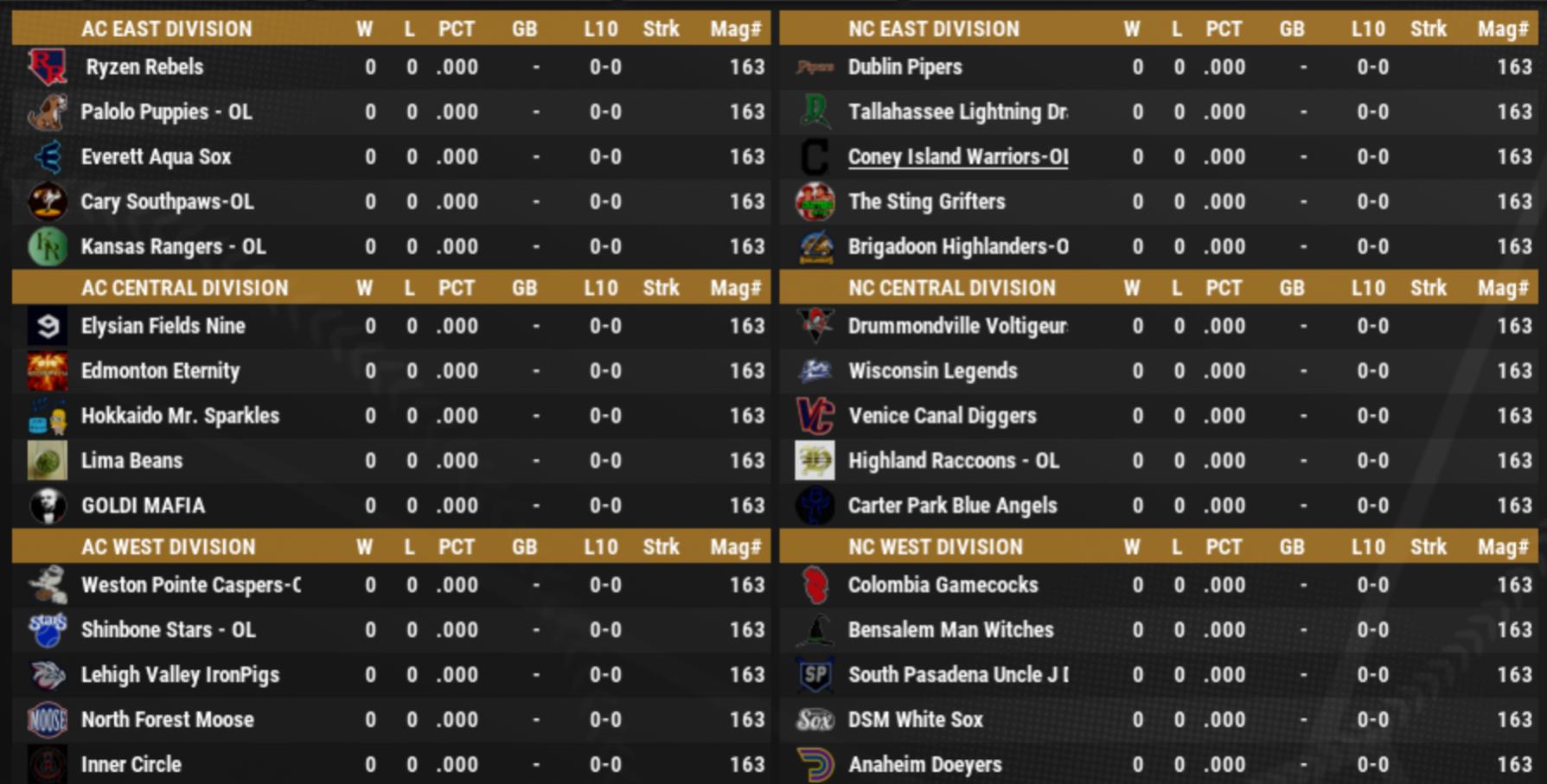 Left Coast is the early leader in a light schedule for OL to begin the sim. Expect the action to heat up quickly, as my scan through the schedule showed a decent amount of games.