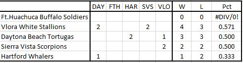 In PT, there are no division leaders from OL, but Left Coast, Port Ruppert, and Waffletown own wild card spots, with Terra Incognita, Hooterville and Jefferson Valley in close contention. Norwood is 4-1/2 behind and K-Town is in a relegation spot, 6-1/2 back. |