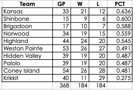 All 5 teams above .500, with the 3 NC Teams ranking 1-2-3 in the standings. Looks like a mass promotion from Iron to Bronze if trend continues.
