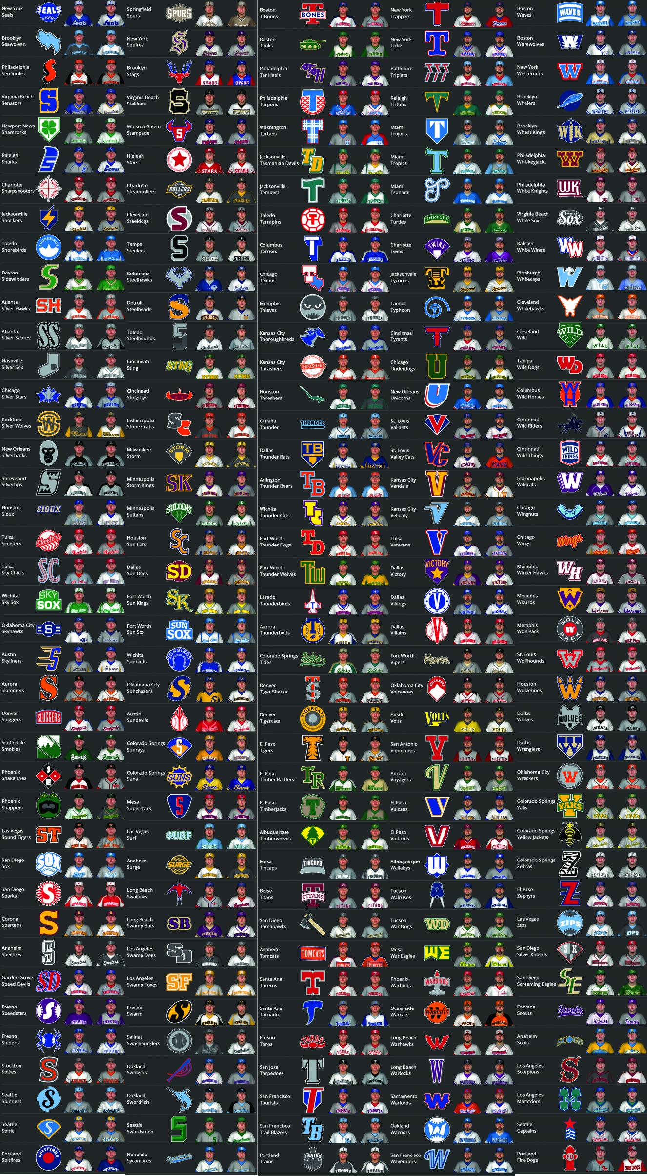 (Edit 5/21/21) Project Completed! It was a grind for some of us, but we got it done. Every fictional logo that ships with the game now has a cap and home/away jerseys! Here is the link to my mediafire download: https://www.mediafire.com/file/vu5yh...oject.zip/file I also have a steam workshop item up for those with steam. Here are some preview collages (they are quite big) of all 800 sets Special thanks to the following: Cephasjames Isedelyod Txranger Pendragon Jparker2112 I'm not sure, but I think that if these get created, then the perfect team teams should get unis with their default logos and so forth. I have done a couple and it seems that it doesn't like to automatically assign away uniforms so that's a bummer. At least if they are placed in the jerseys/nicknames folder cheers