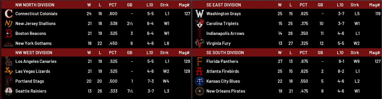 Green Canyon Park – New Orleans, LA; 8.05 pm NORL: Jim Perry (5-3, 3.43) KANC: Pete Alexander (4-3, 5.56) Hello and welcome to another Game of the Week telecast, I’m Nik Hill. Tonight we are at Green Canyon Park in downtown New Orleans to watch the Pirates battle the Kansas City Blues, both of whom play in the PBL’s South Division. A slightly overcast night here in the Big Easy, with just a hint of breeze blowing out to left. The Pirates have been heading in the wrong direction of late with a 4-8 record this month that has left them last in the division, and they’ll be extra keen not to lose further ground to the third-placed Blues, currently four games to the good of them. Jim Perry is starting for the home side tonight, and he has begun the season solidly with five wins and three losses, with an ERA in the mid-threes. He’s up against Pete Alexander, who I’m sure will be looking for an improvement on his performance to date, with opposition hitters lighting him up a bit with a .289 average to this point. With the lively bats in both lineups and both bullpens having been problematic so far, this might be a bit of a runfest tonight if the starters get into strife, as was the case in the middle game of the first series between these two teams in mid-April, when the Blues torched them for 20 runs. Oddly, that came between two low-scoring wins for the Pirates. But their relievers have been on the nose to this point, with their 8+ ERA easily the worst in the SEL, and they’ll need to tighten that right up if they want to be competitive in the long run. To talk about this and more with the man whose job it is to fix these sorts of problems, here’s Juliana Scott. Jules, I understand you and your guest go way back. Juliana Scott: Thanks Nik, I have Pirates Manager Jim Leyland with me and yes, this is the man I did my first live interview with back a few years ago in Pittsburgh. In fact, he’s known me all of my life, haven’t you Uncle Jim? Jim Leyland: Well, I missed the first few hours JJ, but from then on we’ve been pretty good mates, so go easy on me or I’ll be having words with your Mama (laughs). JS: Oh, anything but that, please (laughs). An up-and-down start to the year by your boys, and May has been a tough month up to now – what are your thoughts on the team’s performance? JL: Yeah there are a few key areas we just haven’t been up to scratch in and they’re not hard to find. Our bullpen has had a real tough time of it, starters have been inconsistent, bottom third of the lineup too quiet. We know where we have to be better, but as always it’s easier said than done. We just have to keep working away and trust in our guys to come around. JS: That said, there have also been some excellent signs for your group. Seager has been giving pitchers fits so far, Suzuki and Boyer were like two lightning bolts in April, DiMaggio looks like an elite-level player, same with Mize. Whitey Ford has been fantastic. That must give you plenty of encouragement despite the current standings. JL: Oh, undoubtedly. Plus there’s the younger guys like Jackson and Morgan who we feel will end up being superstars in this league, so we’re confident we have the right bunch of ballplayers to bring sustained success to the club. If we have to ride out a few early bumps like we are at the moment, then so be it. As long as we’re always heading in the right direction. JS: You come into this series off a pretty ugly loss to the Firebirds last night, how’s the mood in the group? JL: It’s probably the game before that hurts more. We’d got home in a tight one on Thursday and were feeling pretty good about things, but then one ill-timed error on Friday cost us 5 unearned runs and we took a tough beat. I think last night was more a reflection of that disappointment. We just hung our heads and didn’t show up to play. That’s the sort of thing that happens with young ballplayers, and I made sure to point out to them after the game that this isn’t how we want to be going about things. So I’m looking for a much improved showing tonight and in the rest of this series. JS: Tonight’s starter Jim Perry has been pretty good for you so far, what are you looking for from him tonight? JL: Yeah, we really like what we saw from Jimbo against the Grays and a couple starts before that at Carolina was maybe his best performance of all. But then in-between those two he got shelled and was gone by the third. So, once again, it’s all about working towards consistency in your play. The bad loss against Virginia he was overthrowing big-time, trying to fan every batter he faced. That was a big lesson learned for him. He just doesn’t have the stuff to pitch like that. I doubt he’ll make the same mistake again. He’s finding out what works for him out on the mound and just needs to stick with his strengths. And we need him to go as deep as he can because of our problems in the pen right now, so he must be as economical with his pitching as he can to give that every chance of happening. JS: And just before I let you go, I have to ask about Ichiro. Have you seen anything like this media coverage from his homeland? JL: Nothing remotely like it. I don’t know how he handles it, let alone always with a smile on his face like he does. I think it speaks volumes for him as a person and Japanese culture on the whole that all the madness is conducted in such an orderly and polite manner, with everyone involved so respectful of one another. We should take a leaf from their book in this country. And then he comes out and does what he has on the field. It’s mind-blowing, utterly mind-blowing. JS: A great story indeed and can't wait to see how it plays out from here. OK, thank you so much for your time and best of luck tonight and for the season ahead. Guess I’ll see you next week for Pop’s birthday. JL: That you will my love, wouldn’t miss it for the world. I know what’s good for me (laughs). JS: G