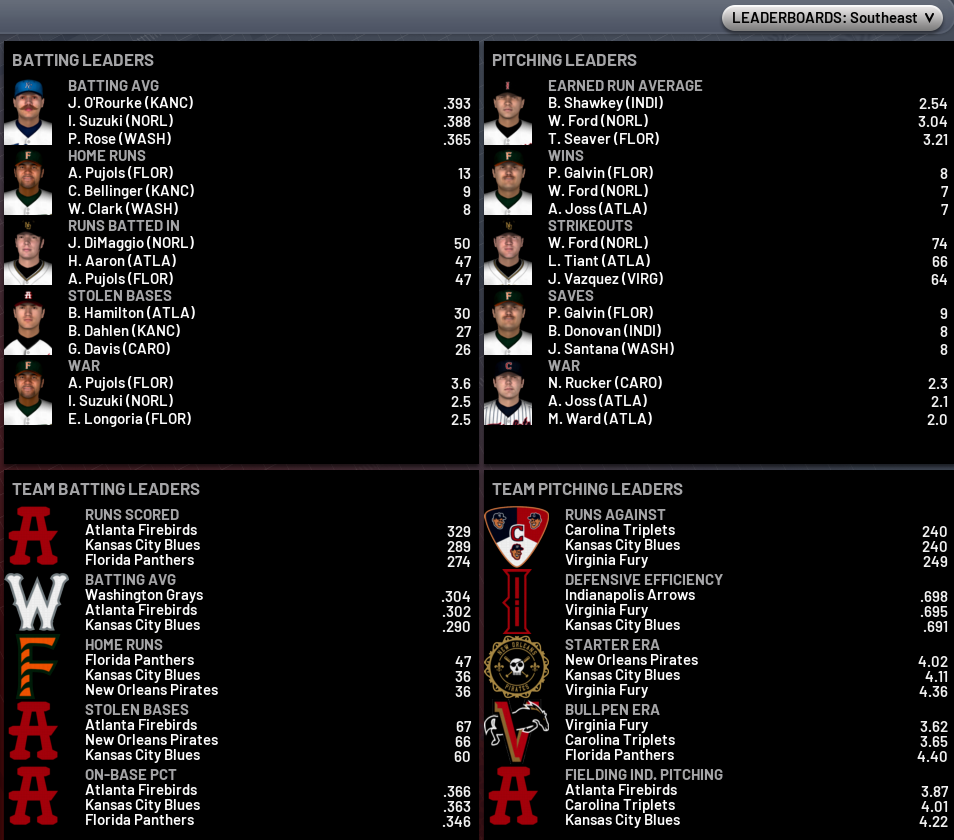 Qualys Field – Indianapolis, IN; 3.05 pm INDI: Jim Kaat (3-2, 4.35) WASH: Camilo Pascual (4-3, 3.16) Hi folks, I’m Nik Hill and welcome to today’s Game of the Week—an afternoon game, which makes for a nice change. We’re coming to you live from Qualys Field in Indianapolis to see a clash of two East Division rivals, as the Arrows play host to the Washington Grays. Wildly differing performances so far from these two sides, with the Grays coming out of the blocks quickly to take a commanding lead in their division, while the Arrows have started sluggishly and find themselves in the cellar. That said, their fortunes have had somewhat of a turnaround of late as exemplified by Indi’s big 18-6 win last night. Even then, however, they are 9 games adrift of the Grays and will need to keep those sorts of performances coming if they want to keep pace with the rest of the division. Should be a good one again today, perhaps not as high-scoring as last night with two talented pitchers who’ve both had solid seasons to date on the mound. Jim Kaat, who is 3 and 2 with a 4.35 ERA gets the ball for Indi, and he’s got a great arsenal of pitches to use to keep the Washington bats off their game. He’s up against the 4 and 3 Cuban-born flamethrower Camilo Pascual and, as I said, there’s a good chance runs will be hard to come by. One of the players who’ll be trying to prove that statement wrong is down on the field with our own Juliana Scott. Juliana, this young man is making quite a name for himself already, isn’t he? Juliana Scott: Indeed he is Nik, I’m with Arrows second-baseman Napoleon Lajoie—Napoleon, did I pronounce your last name correctly? Napoleon Lajoie: Perfectly, Juliana, but please call me Nap or Larry, only my mother calls me Napoleon these days. Bit of a mouthful for these baseball types. JS: Very well, Nap. You’re originally from Woonsocket, Rhode Island – I wouldn’t think there are too many other players in this league from the Ocean State are there? NL: Actually, Gabby Hartnett of the Gothams and I grew up just a few streets away from each other, went to the same grade school and used to play pick-up together as boys. JS: Well there you go, a real breeding-ground for future Hall of Famers! NL: Oh my, I think we’re getting well ahead of ourselves there. JS: Certainly if you can reproduce your form so far over the length of your career you’ll give it a good shake. On that topic, you have started very well, hitting a mite under .300 and leading the club with 37 RBI while the team has really struggled. How do you reconcile the difference when this happens? NL: Well, Juliana, I’d be speaking falsely if I denied that individual performance isn’t important to me. It’s my job to do well at a personal level. But let me put it this way: I feel much happier when I’ve gone 0-for-5 and we’ve won that if I’ve gone 5-for-5 and we’ve lost. JS: I understand. A strong win last night and the side has been somewhat better in May than your 9-18 April, do you feel you guys are back on track? NL: It’s no great surprise we find ourselves where we are in the standings. Our offence has been poor overall, especially if you overlook the big wins like last evening, of which there have been a few. Our starters have been doing their job for the most part, but we hitters simply haven’t been giving them enough runs to play with, and the bullpen has had problems defending the few we have given them. Ergo our record so far. Last night was great and lots of fun to boot, but we need to be performing better day-in, day-out if we are to have any chance in this league. JS: You have a few raw players who look like they could turn out to be pretty special types – Gehringer, Betts, Speaker to name a few, Justin Verlander in the pitching ranks looks set to dominate for years to come, must be a pretty exciting club to be at despite this year’s problems. NL: The club has done a great job putting this squad together. I think they were prepared for a few lean years when they did so, in exchange for some really plentiful ones down the track. We know we’ll be a force to be reckoned with a few years hence. In the meantime we’re all just trying to become better ballplayers and do our best for the club, for Sparky, for the fans. JS: Well we wish you all the best for that, I’m sure we’ll be hearing a lot more from you over the next decade or so, and good luck against the Grays today. NL: Thank you mademoiselle, you are most kind. JS: Back to you Nik. Thanks Juliana and yes, I doubt that’s the last we’ve seen or heard from that young man in these telecasts. The players are lining up on the field for the National Anthem and we’ll be right back with all this afternoon’s action. TOP 1ST The Grays start confidently with singles to Rose and Clark, but Betts shows off his much-vaunted defensive prowess with a superb throw to nail Rose at third for the second out and Kaat eventually gets out of the inning without conceding. BOTTOM 1ST Just a hit to Beckley for the home side. TOP 2ND A two-out hit to Zack Wheat is all. BOTTOM 2ND The hosts are the first to put a concerted rally together as Betts singles with one out and Frisch bungles what should have been a DP to end the inning, then Edmonds walks to fill the bags. Goslin crushes a long double to left-center that plates two of the runners and a sac fly by shortstop Ozzie Smith adds a third. Indianapolis 3, Washington 0 TOP 3RD Rose gets his second hit of the game and Clark just misses one to end the inning. BOTTOM 3RD A leadoff single to Beckley leads to nothing as Cochrane rolls into an inning-ending DP. TOP 4TH Kaat gets into all sorts of trouble as he loads the bases with none out and Wheat knocks in two with a single. A passed ball on Cochrane lets the tying run come home and then a two-out RBI double by Frisch puts the visitors ahead. Washington 4, Indianapolis 3 BOTTOM 4TH Washington is lucky to escape a bases-loaded jam 