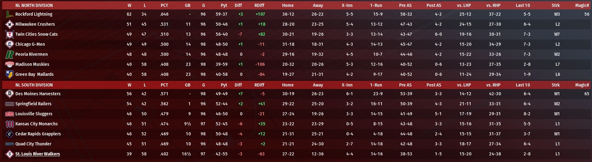 In the midst of their worst season in franchise history, the St. Louis River Walkers looked to build for the future trading closer Ernesto Barbosa, right fielder Alex Greene and outfield/first base prospect Jerry Perez to the Cleveland Juke Box Heroes in exchange for pitching prospects Danny Burch and Greg Sones.