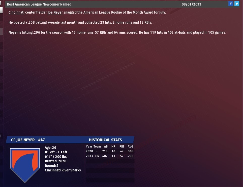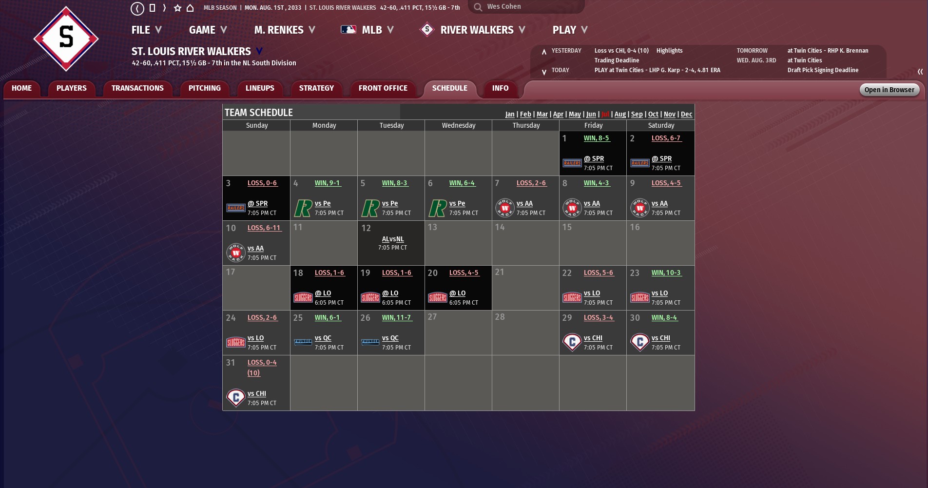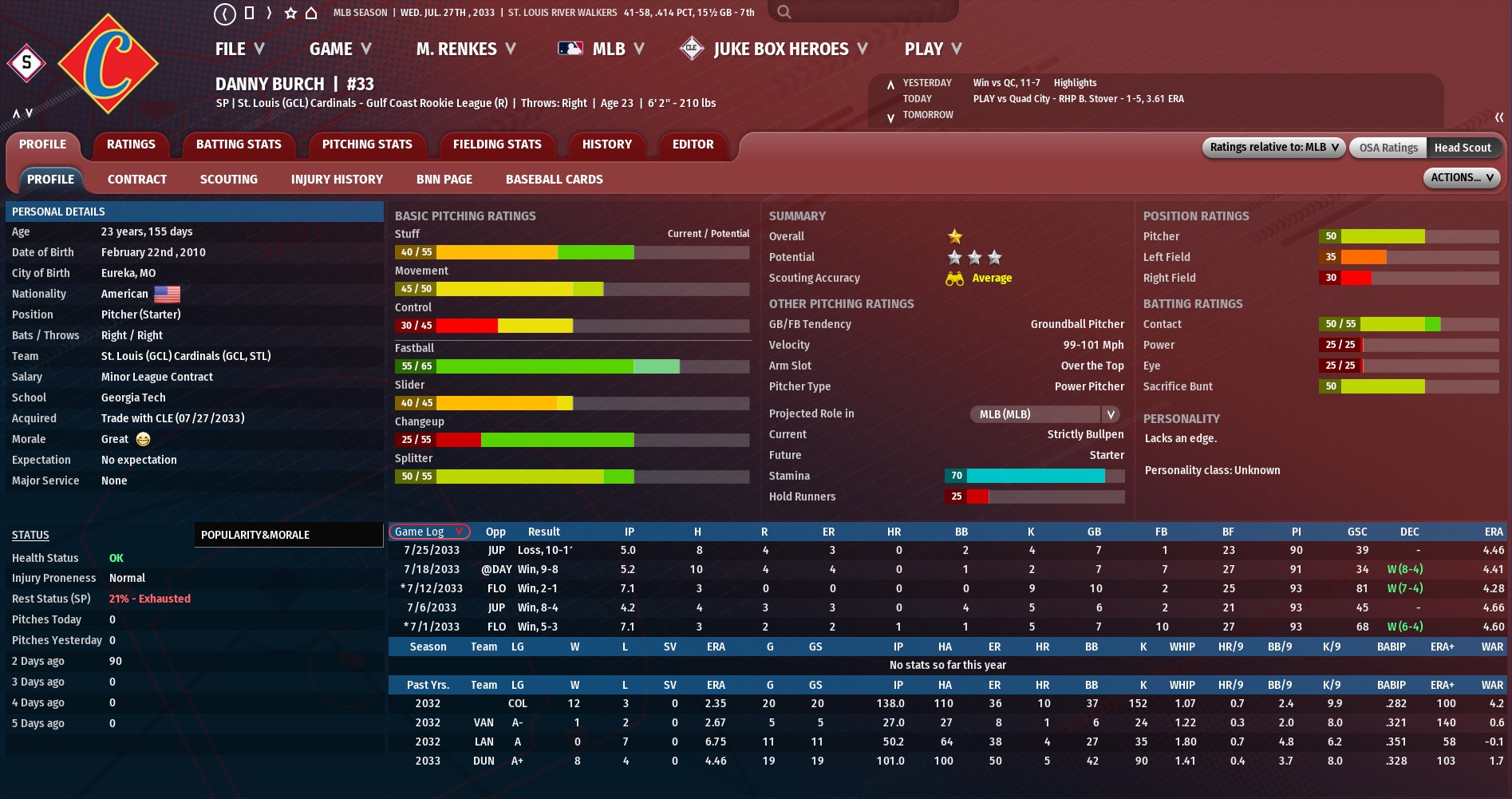 In the midst of their worst season in franchise history, the St. Louis River Walkers looked to build for the future trading closer Ernesto Barbosa, right fielder Alex Greene and outfield/first base prospect Jerry Perez to the Cleveland Juke Box Heroes in exchange for pitching prospects Danny Burch and Greg Sones.