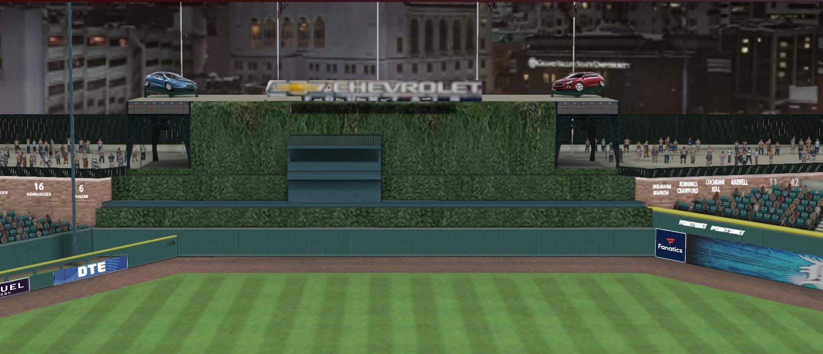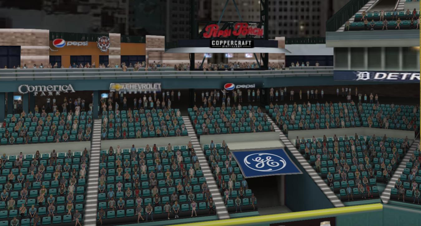 Made some more updates to Comerica.... Pepsi Porch, Copper Craft, Chevrolet Fountain in center, thin scoreboard below Comerica and Ball park signs in left. Pepsi signs in left and right field.