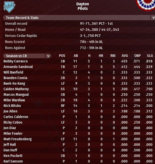 MBL news: 2033 World Series -- Dayton Pilots regular-season stat package