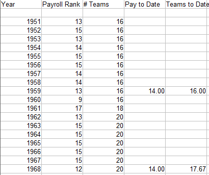 OK, here's the payroll rank. I'm taking the numbers from the front office screen on opening day.
